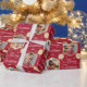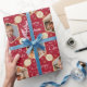 Make your holiday gifts extra special with custom photo wrapping paper! This editable template is personalized with four of your favourite photos, and the recipient's name, your family name, or the holiday year. It features hexagonal picture frames, set against a festive background of snowflakes and stars, along with the phrase "Merry Christmas". A stylish design pairing traditional typography with a classic geometric design. Perfect for photos of kids, family, friends, and pets! This seamless pattern gift wrap is available with a matte or glossy finish. Printed colours: deep red, white, and a gold colour.