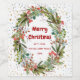 Red-green berries and branches winter Christmas wreath wine label. Customizable!