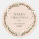 Merry Christmas Family Name Winter Greenery Classic Round Sticker