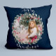 Merry Christmas family photo Blue Throw Pillow. Personalize Pillow with photos of your choice and create perfect Christmas gift!