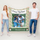 Merry Christmas Family Photo Name Floral Pattern Fleece Blanket