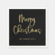 Merry Christmas | Faux Gold Casual Script on Black Napkin