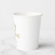 These simple and stylish holiday paper cups say "Merry Christmas" in modern, casual faux gold script typography on a white background.