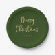 Merry Christmas | Faux Gold on Green Casual Script Paper Plate