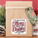 A vibrant square sticker showcases the cheerful phrase Merry Christmas in glittering letters.