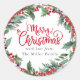 Merry Christmas Festive Winter Floral Personalized Classic Round Sticker