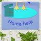 This awesome kitchen towel features a cute little grey and white penguin with beady black eyes and yellow beak and feet. The penguin is holding a big blue fish with one flipper and standing on a pale blue lump of ice. There is an open present next to the penguin complete with a festive ribbon.