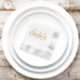 This lovely, elegant look paper napkin is shown in the white color with gold foil stamping, shown with a Merry Christmas print.