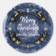 Merry Christmas From Blue Navy Glitter Gold Wreath Classic Round Sticker