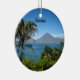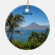 Merry Christmas from Guatemala, scenic landscape photograph of volcano and lake, round Christmas ornament.