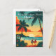 Send warm island wishes with this “Merry Christmas from Hawaii” postcard. Featuring surfers in Santa hats under a glowing tropical sunset, it’s the perfect festive card for beach lovers.