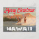 Merry Christmas from Hawaii with a vintage image of surfers sends a retro holiday greeting.