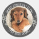 Create your own photo stickers for Christmas gifts - you choose whether the photo is from the person giving the gift or the person receiving it. The wording is fully editable and currently reads "Merry Christmas Cutie! Love [dog's name]". The design is dark grey with white typography and silver grey snowflakes.