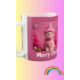 Personalize this pink mug with your own text or just keep Merry Christmas from the Cats, These cats are ready for a festive time.