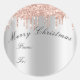 Merry Christmas From To Holidays Spark Rose Grey Classic Round Sticker