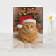 This festive card features a ginger cat in a Santa hat, sitting peacefully in front of a glowing Christmas tree.