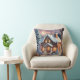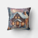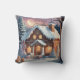 Merry Christmas Gingerbread House Throw Pillow. A cute gingerbread house in the snow. It is like a sweet winter dream! The house has icing designs and is surrounded by candy canes. Little lights twinkle, making it all cozy. It is like a magical holiday picture.