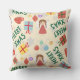 Merry christmas text girly pink background with present and colourful ornaments throw pillow. Girly christmas home decor for kids.