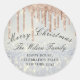 Merry Christmas Glitter RSVP Rose Smoky Blue Classic Round Sticker