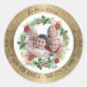Merry Christmas Gold Foil Wreath Photo Address Classic Round Sticker