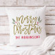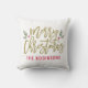 Merry Christmas Gold Script Family Name White Throw Pillow