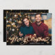 Merry Christmas Gold Sparkle Script PHOTO Greeting Holiday Card