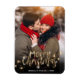 Merry Christmas Gold Sparkle Script PHOTO Greeting Magnet