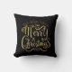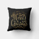 Merry Christmas Gold Typography Black Chic Throw Pillow