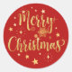 Merry Christmas Gold Writing Stars Snowflakes Red Classic Round Sticker
