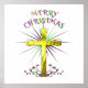Enjoy the holiday season with this beautiful golden cross, some leaves and the colourful words - Merry Christmas.