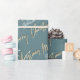 Merry Christmas Golden Script Name Smoky Aqua Blue Wrapping Paper