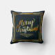 Elegant Merry Christmas in two-tone golden yellow coloured script font with a golden accent flourish set in gold yellow coloured geometric frames. Set on solid black pearl deep blue