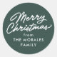 Merry Christmas green casual script holiday gift Classic Round Sticker