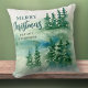 Merry Christmas Green Forest Trees Gift Throw Pillow