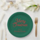 Merry Christmas Green Script Holiday Paper Plate