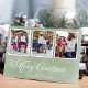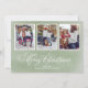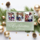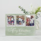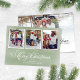 This design features a merry Christmas, with a photo collage, an elegant, green, watercolor photo card, script typography, calligraphy, simple minimalist, a minimal holiday photo cards.
