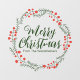 Merry Christmas dark green script with a rustic leafy dark green and red wreath frame border cheerful happy cute Window Cling.