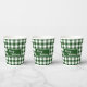 Green and white buffalo check Christmas party paper cups feature a dark green rectangle with a thin white border in the centre which reads "Merry Christmas" in a white script font. Perfect for a holiday party.