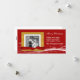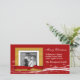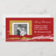 Very festive and modern Christmas photocard with a red snowy background with a golden coloured photo frame that has a realistic looking red bow across the bottom. You can upload your own photo and customize the text to suit.
