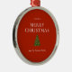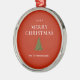 Merry Christmas greeting with tree on red custom Metal Ornament