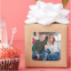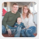 Merry Christmas hand lettered script photo holiday sticker with name and year in white text.