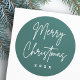 Merry Christmas handwritten script pine green Classic Round Sticker