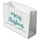 Custom Merry Christmas Happy New Year Calligraphy Script Text Name Elegant Modern Template Pine Tree Green & White Large Gift Bag.