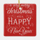 This ornament features a chalkboard style typography graphic which says "a very merry Christmas and a happy New Year!" On the back, you can put an image and last name along with the year.