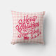 Merry Christmas Happy New Year Pink Check Throw Pillow