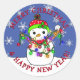 Merry Christmas Happy New Year Snowman Classic Round Sticker
