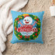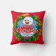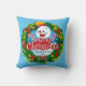 Merry Christmas Happy Snowman Wreath Throw Pillow
