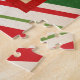 Celebrate the holidays with this gorgeous Lowcountry-themed Christmas jigsaw puzzle. The unique design is an old world style map of Hilton Head Island with a jolly winking Santa Claus. The background is a candy stripe pattern in red, green, and tan. This design also available as a Christmas card. Please browse our complete collection of coastal, Lowcountry, and Hilton Head Island themed holiday cards and gifts. Special design requests accepted. (Creative design by Glenda Motsavage.)