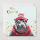 Merry Christmas Hippo Santa hat and scarf Holiday Card