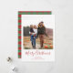 Simple green and red tartan country plaid with white stitching accents. Christmas holiday red green plaid, classic family 1 photo picture, tartan flannel winter country, farmhouse cute whimsical simple pattern, simple minimalist minimal typography, an elegant calligraphy script font, merry Christmas greeting card, Christmas holiday photo greeting card, rustic country farmhouse farm, modern hand-lettering script font